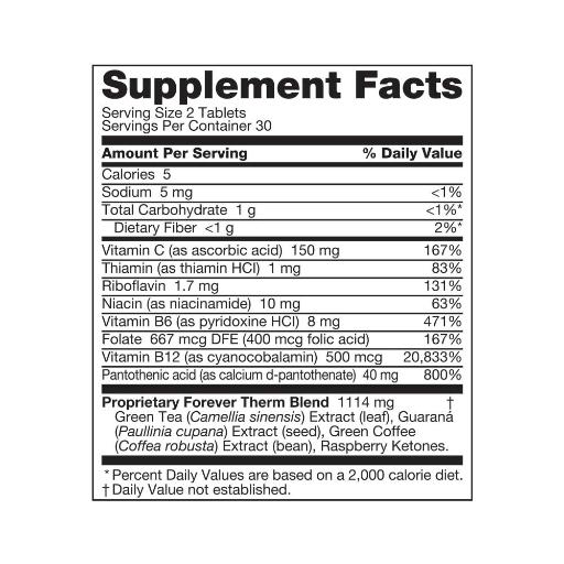کاهش وزن مسیری طولانی و سخت دارد که حفظ یک رژیم غذایی سالم و ورزش منظم برای دستیابی به این اهداف بسیار مهم است. مکمل فوراور ترم، با افزایش دمای بدن، باعث تسریع فرآیند سوزاندن کالری و چربی می شود. نیروی محرکه این مکمل قوی عصاره چای سبز است که از 50 درصد ECGC تشکیل شده است. این ترکیبات پلی فنلی قدرتمند به دلیل توانایی آنها در سوزاندن چربی شناخته شده است. این مکمل ترکیبی از مواد گیاهی و مواد مغذی را ارائه می دهد تا انرژی و متابولیسم را تقویت کند تا به شما کمک کند به هدف خود برسید.